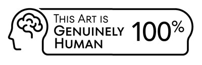 The ‘Genuinely Human’ badge signals to the viewer that what they are seeing is original content by the artist. Furthermore, the percentage mark indicates the proportion of human-created content – 100% ensures that no AI-generated tools were used to create the work.