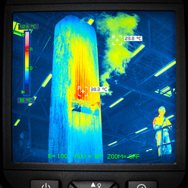April 2000 After Mexico, we shipped one of the Totem structures back to the Lab. Once it arrived, we propped it up in the warehouse and Trish began doing tests. First was the Thermal scan. The warmest part...