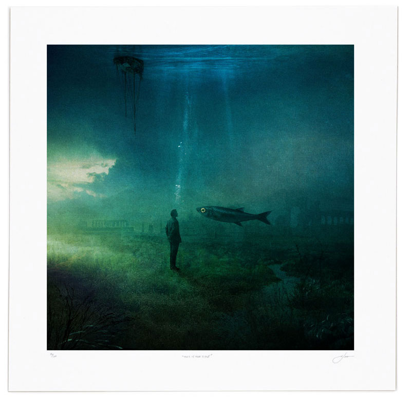 If so, it is made more poignant by the fish, eyes unblinking, floating with indifference to the man and his circumstances. Whatever his aftermath, it’s irrelevant. And so this fish symbolizes adaptability and persistence. It is not captive to history like people are; it swims, carrying its life forward on terms beyond our human intentions.
